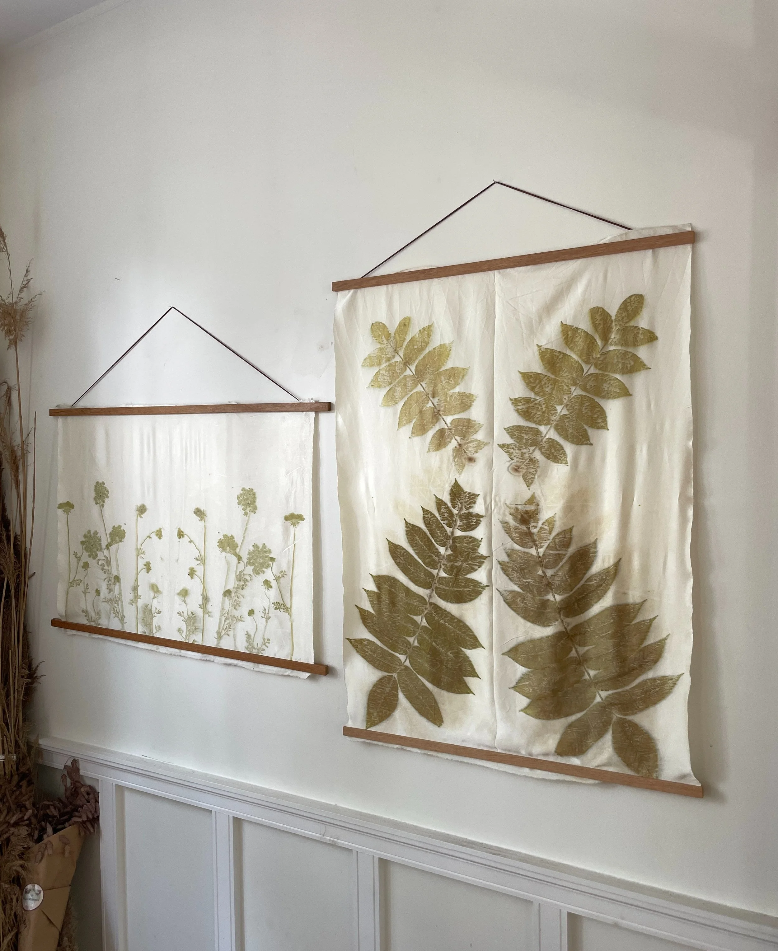 Queen Anne’s Lace and Butternut Walnut Leaves botanically printed on silk